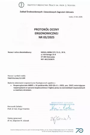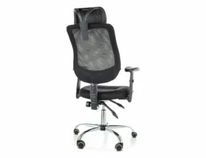 Ергономичен въртящ се стол, отговарящ на изискванията за безопасност и здраве при работа (БЗР) за офис столове съгласно наредба ДВ, бр. 2367. Обшивка: мрежа + мембранна тъкан, рамка: метал, цвят: черен / сребрист. Мултиблок механизъм, регулируеми: подлакътници, облегалка за глава, височина на облегалката.